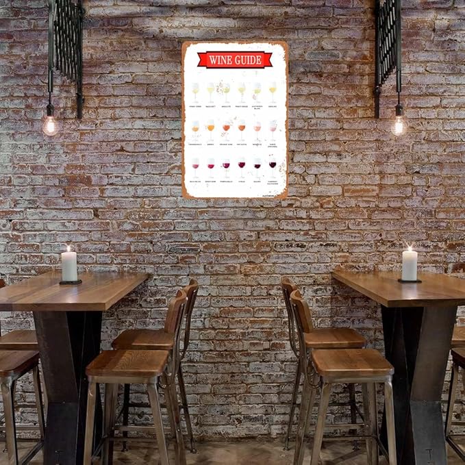 Aluminum Wine Guide Sign, Wine Decor for Kitchen Wine Wall Decor, Vintage Metal Sign for Home Bar Man Cave Decor Gifts 12"x16"