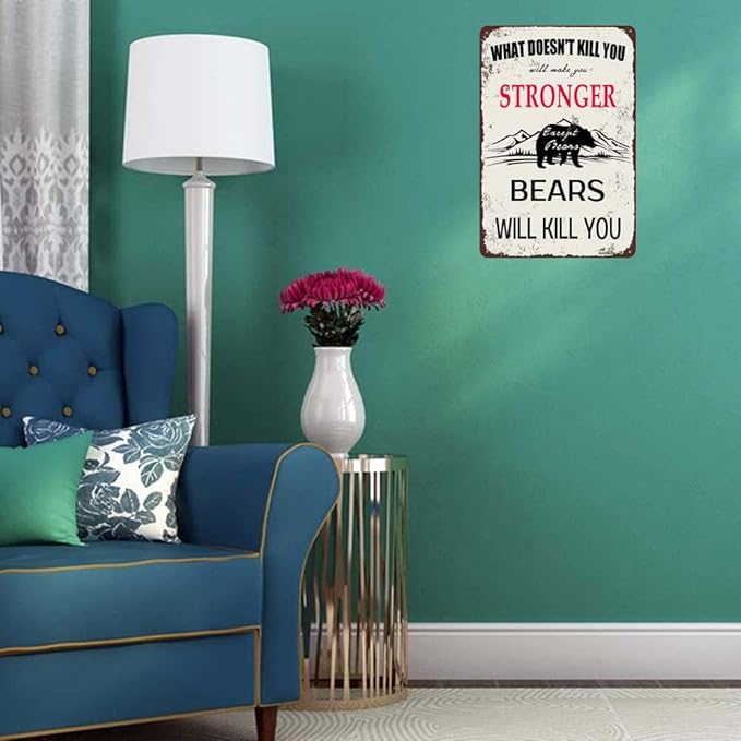 Aluminum Sign, Funny Bear Sign, Man Cave Decor, Vintage Metal Sign for Home Garage Room Bar Pub Club Cafe Decor 12"x16"