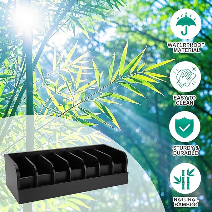 GTI Belt Organizer,2pcs 7 Compartments Belt Organizer for Closet and Drawer, Bamboo Display Case for Tie and Belt, Belt Storage Organizer for Men Women (Black)