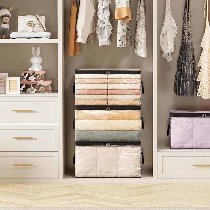 - Generous Capacity: Each transparent storage bag measures 21.6"(55cm) x 13.8"(35cm) x 12.4"(31.5cm) and provides a spacious 60 L. Each storage bag can hold 1 double duvet, 4 large blankets, 10 sheets, approximately 50 T-shirts, 12 jackets, and 10 sweaters