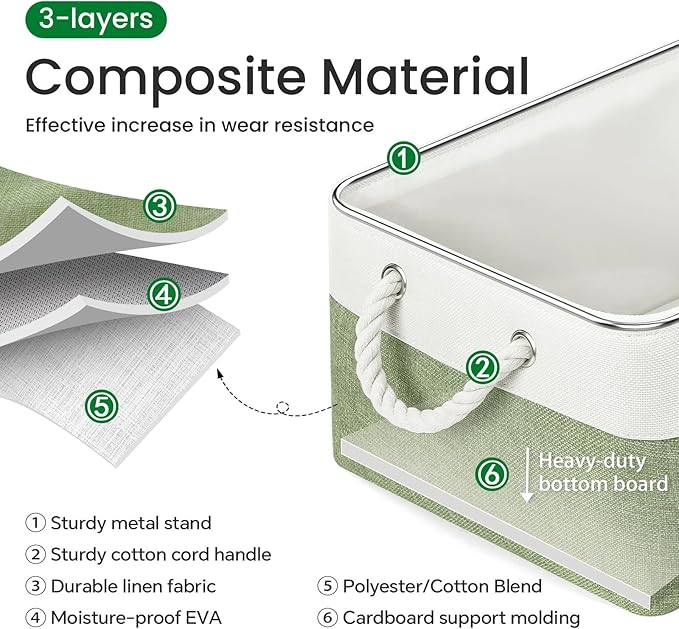 - High-Quality Fabric Storage Baskets: VQRTEXA’s 3-Pack storage baskets are crafted from durable linen and eco-friendly EVA, ensuring long-term use and sustainability. Ideal for shelves and closets, these fabric storage boxes are a stylish solution for organizing your home