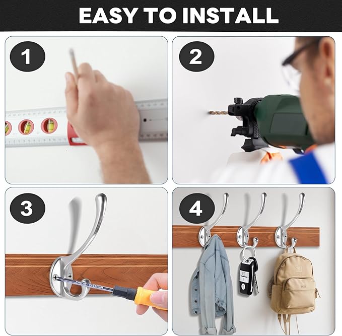 - 【Multi-scenario】coat hooks wall mount is useful in multiple scenarios at home and public places, can hang a variety of items and provide a convenient and comfortable experience, for Living Room, bedroom, kitchen, bathroom, closet,