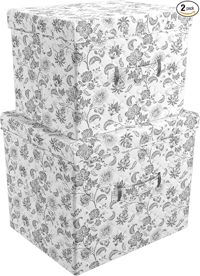 Martha Stewart Essential Collapsible Stackable Decorative Home Storage Organization With Lidded Tops, Set of 2 Nesting Boxes with Lids, Bedford Floral