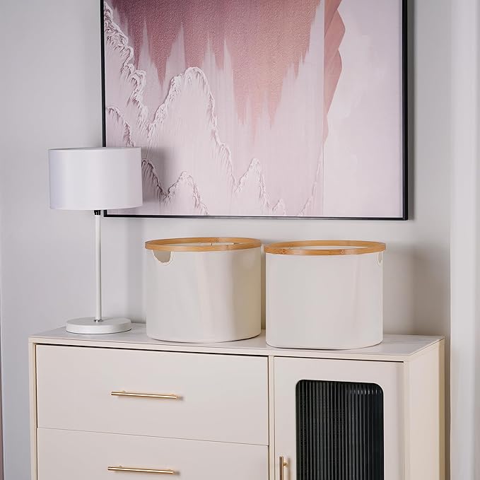 - 【Stylish Appearance】The neutral color and bamboo frame give the fabric storage bins a simple and elegant look. It will look great in the bedroom, bathroom or living room. When you don't know what to give as a gift, it will be a great idea.