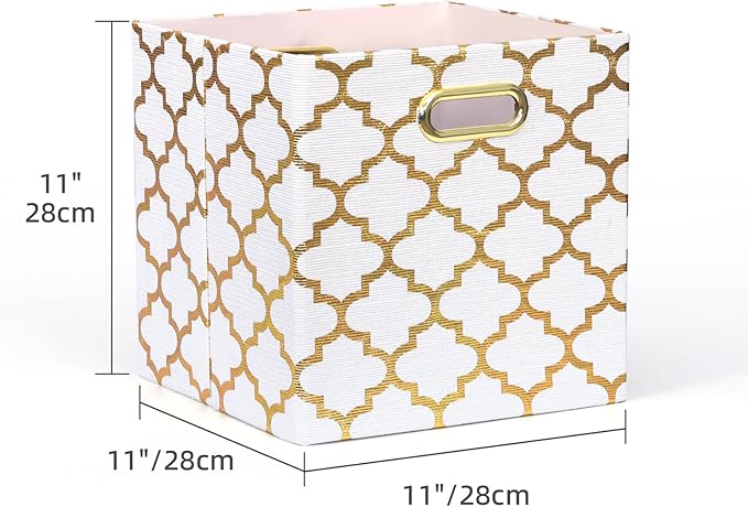 11x11x11 Cube Storage Bins, Collapsible Storage Bins Fabric Storage Cubes Organizer Baskets Box Drawers for Shelves, Closet, Wardrobe, Bookshelf, Cabinet, 3 Pack, White & Gold