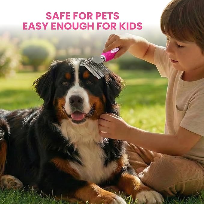 - LONG STEEL BLADES: Fitted with extra long 2.5โ stainless steel dematting blades, this unique pet grooming tool reaches deep into thick fur to quickly break up knots, mats & tangles. It's the best grooming rake for undercoat brushing!