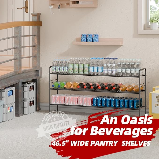 3 Tier Shoe Rack for Closet, 46.5 Inch Extra Long Shoe Storage Organizer for Shelves, Heavy Duty Metal, Easy Assembly, Black