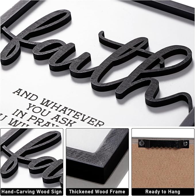 - 【Ready to Hang】Pre-installed hanging hooks at the back makes this scripture wall art easy to mount, just use a screw or nail on the wall to hang this religious wall decor.