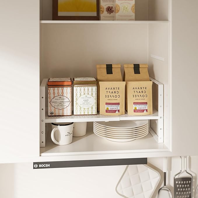 Multi-Functional Metal Shoe Rack,Expandable Adjustable Stackable Kitchen Organizer,Metal Shelf risers for cabinets, Kitchens and Closet, Bathroom(2Packs/White/Large)