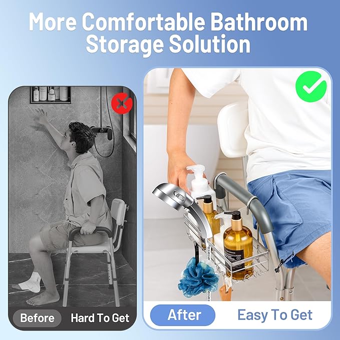 - Fit Most Standard Shower Chair: Specially design for seniors and mobility-impaired individuals to keep bathing essentials close at hand