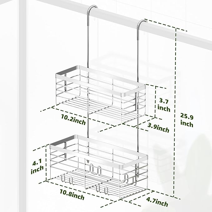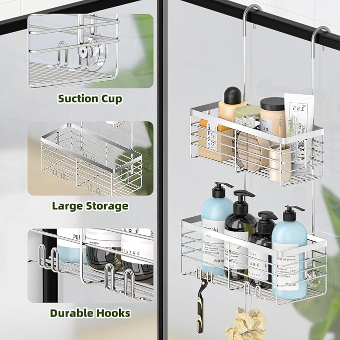 YUOROS Shower Caddy Hanging, 2 Tier Over the Door Shower Organizer Rack 304 Stainless Steel Rustproof (Silver)