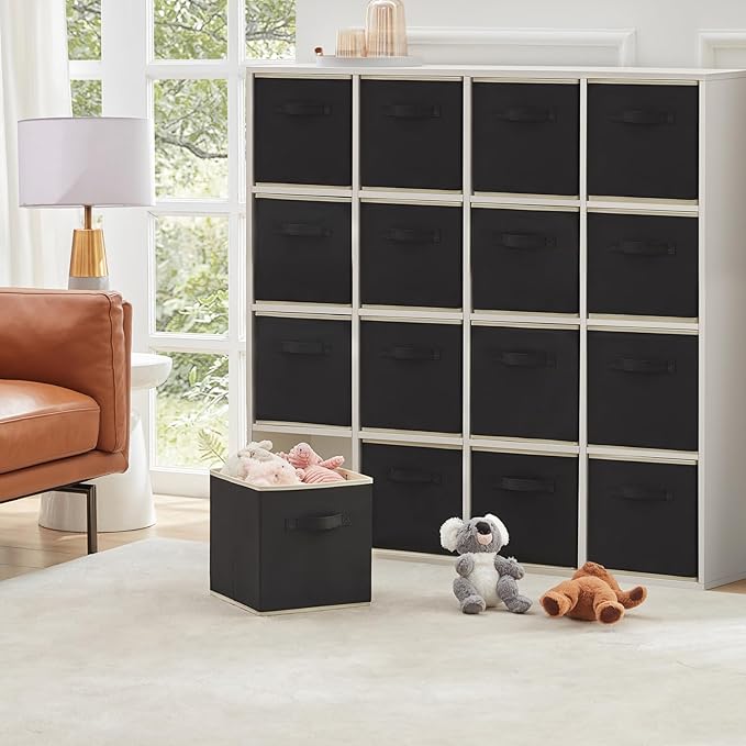 Lifewit 16 Packs Storage Cubes, 11 Inch Cube Storage Bins, Foldable Decorative Fabric Storage Baskets for Organizing Home Organizers with Handles for Shelves, Closet, Black