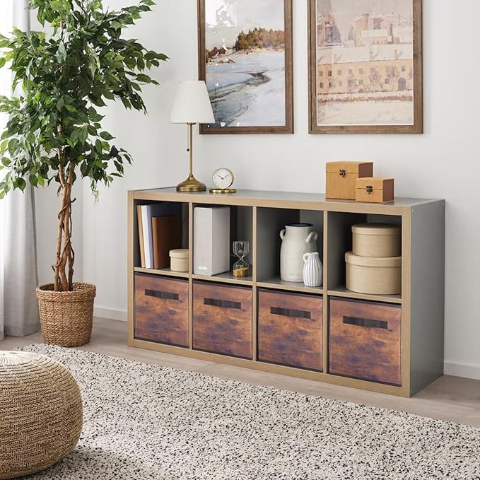 ShellKingdom Storage Bins, Foldable Fabric Storage Cubes And Cloth Storage Organizer Drawer For Closet And Toys Storage, 2 Pack (Retro Wood Pattern)