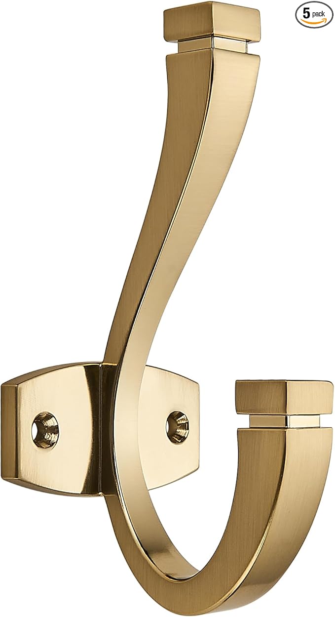 SAILING Coat Hooks -5 Pack Champagne Bronze Towel Hooks Robe Hooks Decorative Wall Hooks for Bathroom Bedroom Kitchen Towel Robe Clothes Cabinet Closet Bathroom Hardware