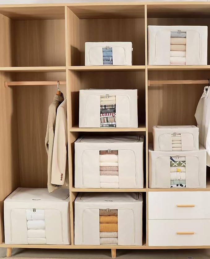- 【High-quality Material】Made of premium durable cotteon linen fabric and waterproof PE coating material, they protect your stored items from dust and moisture,apply to storage summer clothing ,as underwears,shirts,jackets,jeans,dress,hats,thin blankets,small toys