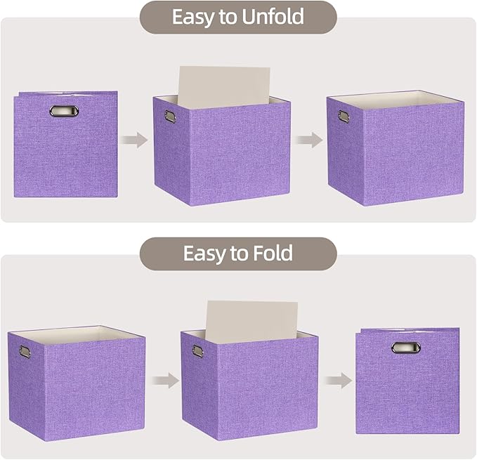 - Foldable Storage Box: These bins can function as open-top bins or as drawers when used with a storage-cube organizer (not included). The collapsible storage box design allows it to fold flat when not in use, providing space-saving storage. The lightweight fabric bins are easy to transport, and these versatile closet baskets help save space and keep things organized.