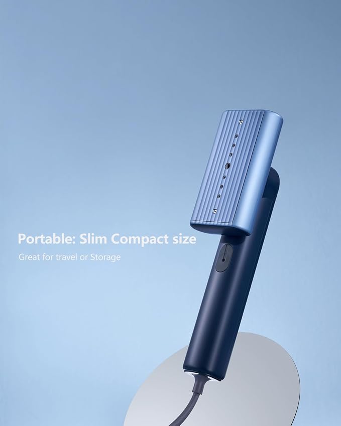 - PROFESSIONAL SLIM DESIGN!: G9 2-in-1 Professional Travel Handheld Steamer for Clothes has Luxury-look slim design with rotating heating head, Mainbody Light only 1lbs weight, lasts for 8 minutes of continuous steaming to emit wrinkle perfectly and fast, also Keep clothes as dry as possible