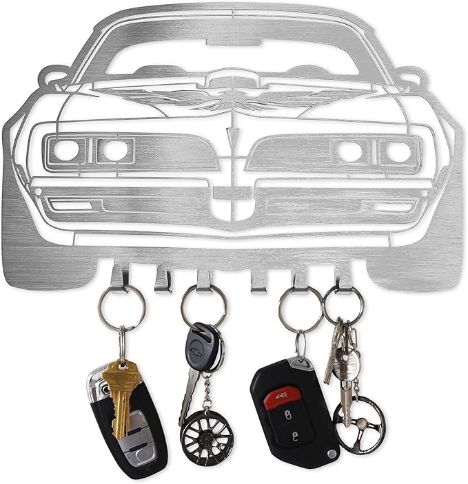 MOOH Key Holder for Wall - Metal Automotive Key Holder With 6 Hooks - Unique Car Gift for Men, Women, Car Lovers & Enthusiasts - Cool Man Cave Decor (Pontiac Firebird 1977, Stainless Steel)