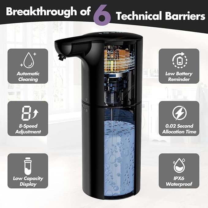 - HANDS-FREE ENJOYMENT - Improve your daily life with the YIKHOM soap dispenser! It features eight adjustable dispensing levels and cutting-edge infrared motion sensing technology, allowing you to easily dispense liquid soap.