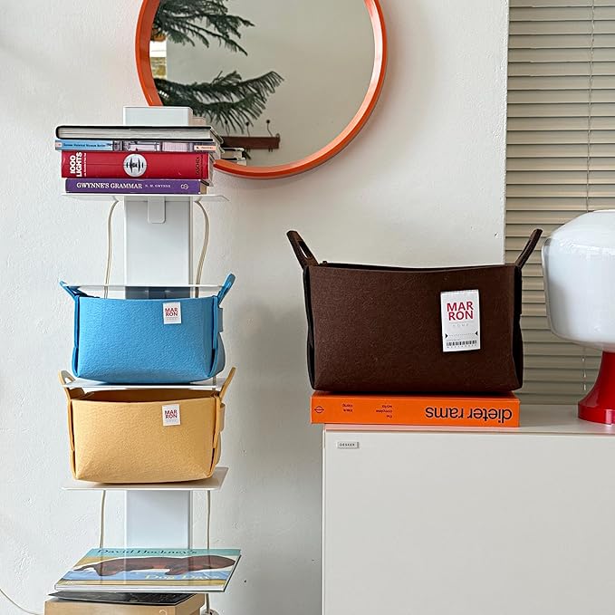 - [Stylish Design for Any Space] Transform your home or office with the MARRONS Felt Storage Basket. Available in 23 vibrant colors and 4 practical sizes, this foldable basket complements any interior while keeping your space neat and organized. Its minimalist design seamlessly blends into any room, whether it’s the bedroom, living room, office, or kids’ playroom.
