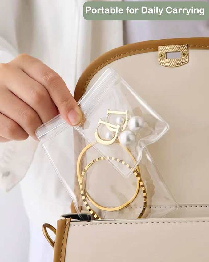 - 120 Portable Anti Tarnish Jewelry Bags in Multiple Sizes: Protect and organize your jewelry with our acrylic jewelry box of 60 thick PVC jewelry pouches. Includes 20 x large (4.7x3.2in), 60 x medium (3.2x2.4in), and 40 x small (2.4x1.6in) bags, perfect for rings, earrings, necklaces, and more. These durable, waterproof, and oxidation-resistant pouches keep your jewelry tangle-free, dust-free, and free from scratches. Clear design for easy identification. Ideal for travel or everyday storage.