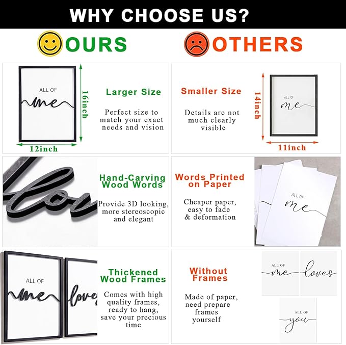 - 【Hand Carving 3D Wood Sign】Unlike other cheaper paper print words, our bedroom wall decor inlaid with 3d hand-carving wood words [me], [loves], [you], that makes the bedroom decor wall looks more stereoscopic and eye-catching. The 3D above bed wall decor gives your room an instant make-over, promotes your taste and texture of daily life, it helps you get a lot of compliments.