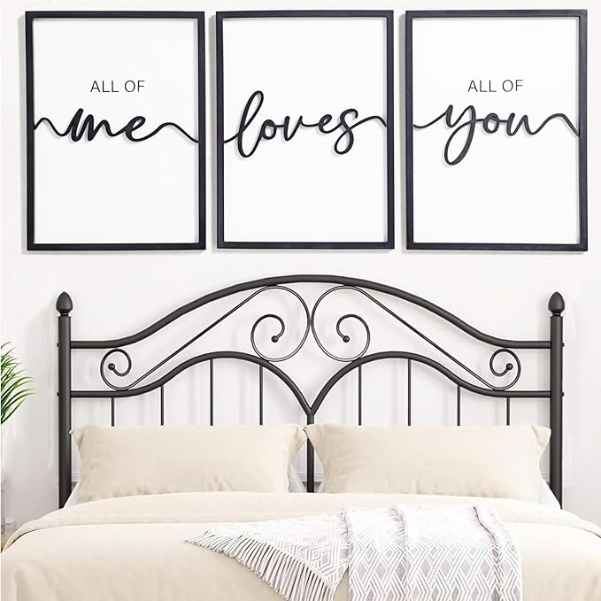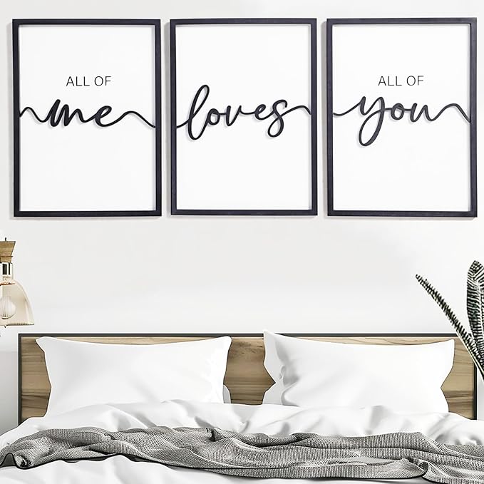 3D Wood All of Me Loves All of You Sign Bedroom Wall Decor 36x16”, Above Bed Wall Decor for Couple Bedroom Decor(12x16 inches, Set of 3, Framed)