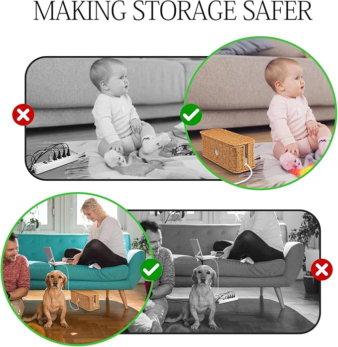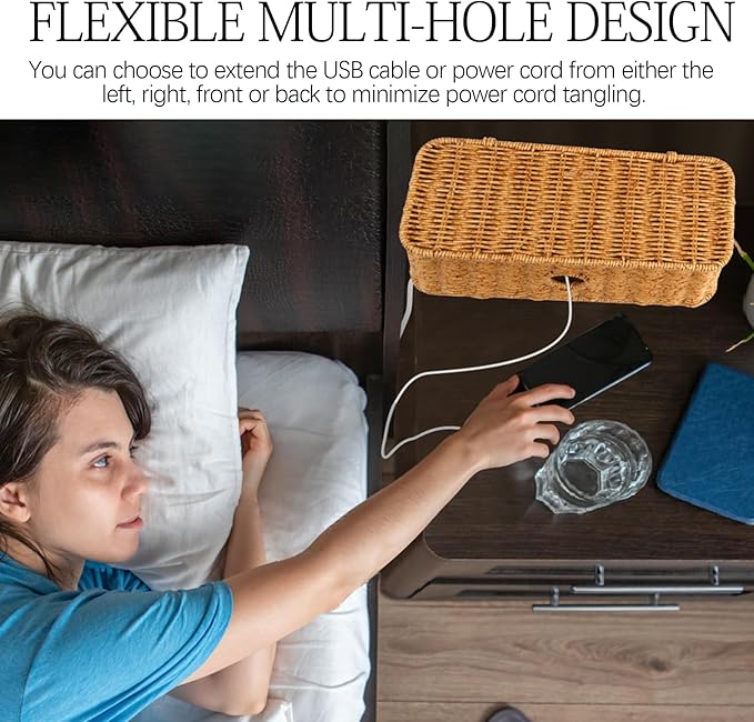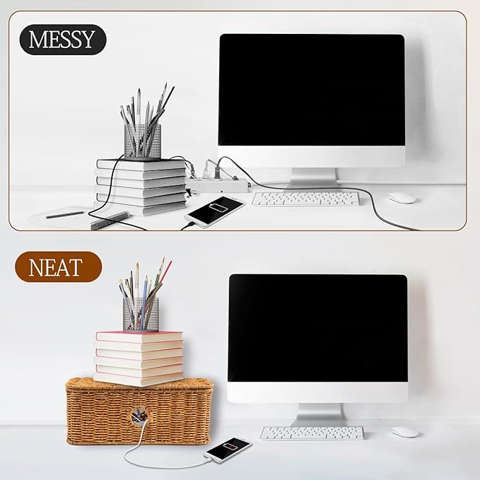 - Natural and simple design style:The cord organizer box is hand-woven with rattan threads in a unique natural style that can be used in most scenarios, turning those cluttered cords into a beautiful landscape!