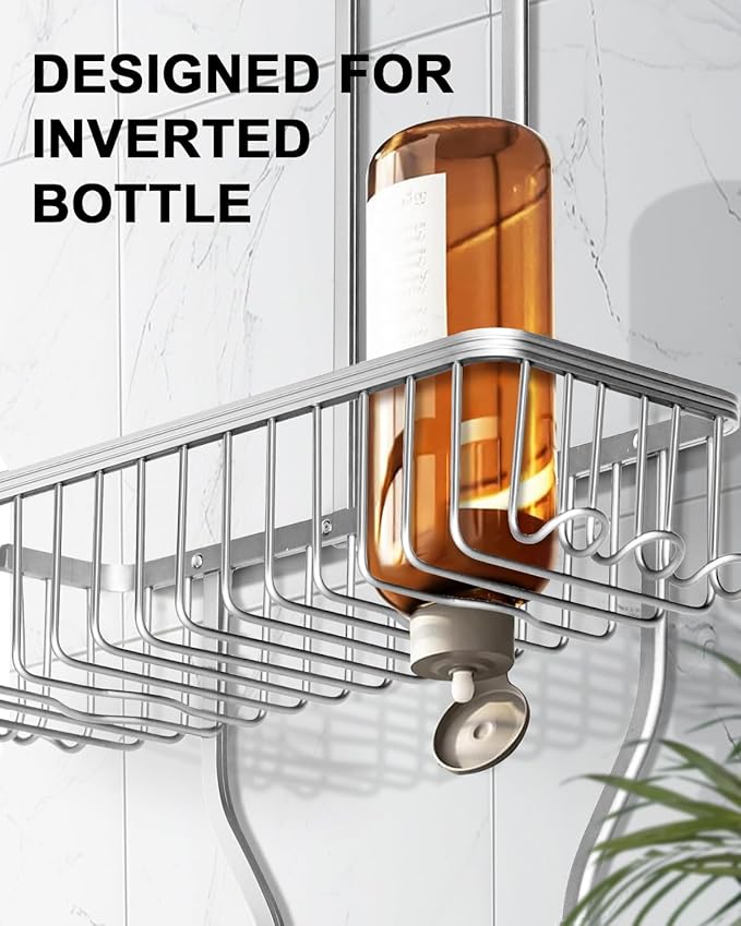 - NEVER RUST: The hanging shower shelf is made of aluminum alloy, which reduces the pressure on the shower head, suitable for a wet environment like the bathroom. With a surface hardness of 200-300 HV, the hanging shower caddy is sturdy and durable and can hold up to 40 pounds of toiletries