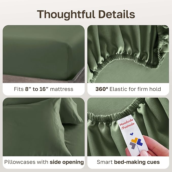 California Design Den King Deep Pocket Sheets Set - Luxury 600 Thread Count 100% Cotton Sheets King Size, Sateen, Hotel-Quality, Better Than Egyptian Cotton Sheets - Dark Olive Green