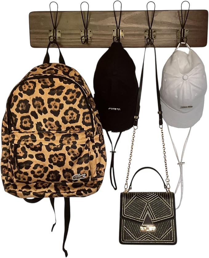 - Heavy Duty Coat Hooks: Features 5 antique gold double coat hooks wall mounted, each rated to hold up to 15 lbs. Perfect for coats, hats, towels, backpacks, or bags without bending or breaking.