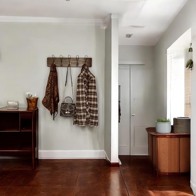 - Heavy-Duty & Easy to Install: This 24-inch wooden coat rack features 5 large hanger hooks, each built for lasting strength. It mounts flush to the wall for secure, space-saving storage and includes 2 screws, 2 anchors, and instructions for installation.
