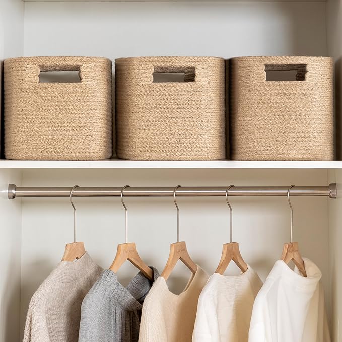 UBBCARE 4 Pack Shelf Baskets, Larger Woven Storage Baskets for Organizing(14.5''L x 9.84''W x 9''H), Basket Organizer for Dog Toys, Books, Clothes, Large Gift Basket, Jute