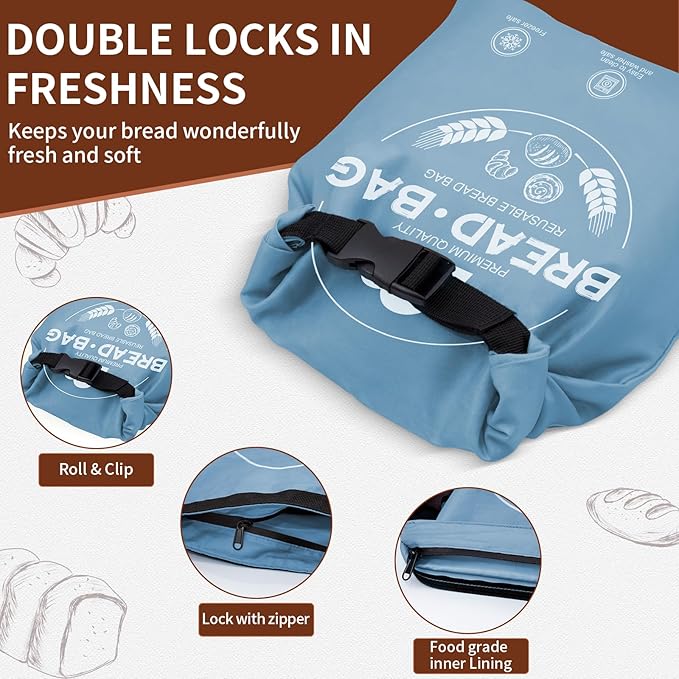 - Reusable Bread Bags for Homemade Bread – Keep sourdough and artisan loaves fresh longer with our food-grade lining and waterproof zipper seal. Perfect bread bags for sourdough - these eco-friendly storage bags lock in moisture to keep your bread fresh