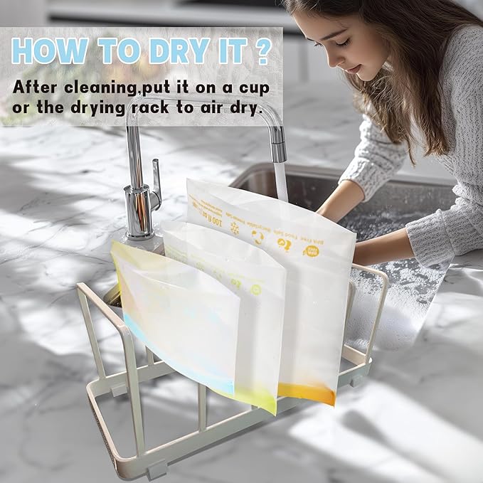 - 【EASY TO CLEAN】These reusable food storage bags are easy to clean with a bottle brush and after cleaning,put it on a cup or the drying rack to air dry.The reusable lunch bags are DISHWASHER SAFE,after using, you can rest assured to upside down the reusable bag then put it on the TOP RACK of the dishwasher and then they will come out as good as new. ATTENTION:DO NOT wash at a temperature higher than 60℃/140℉,or you will certain damage to the bags.