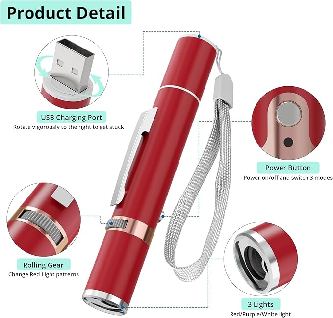 - Multiple Function: The cat toy can also make you a presenter. It is very bright. Plus, you can turn on the switch with a single press. White mode can glow in the dark; Purple mode can detect money.