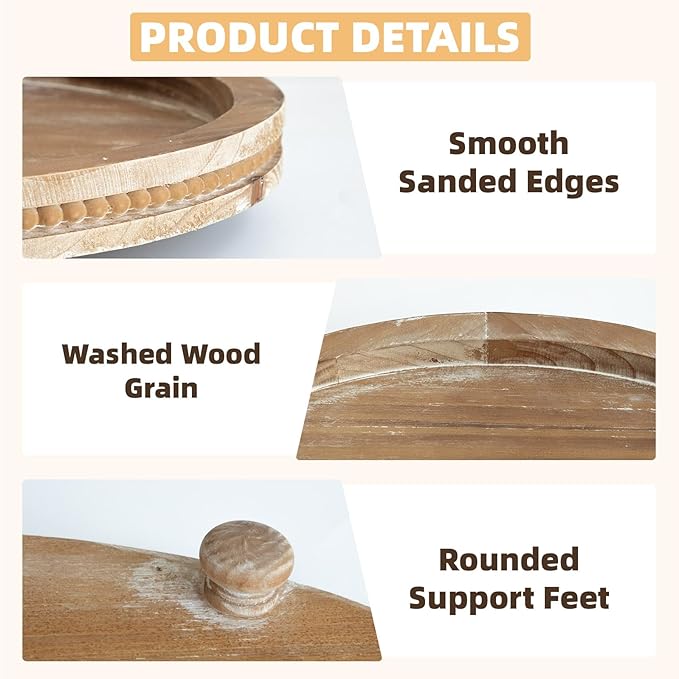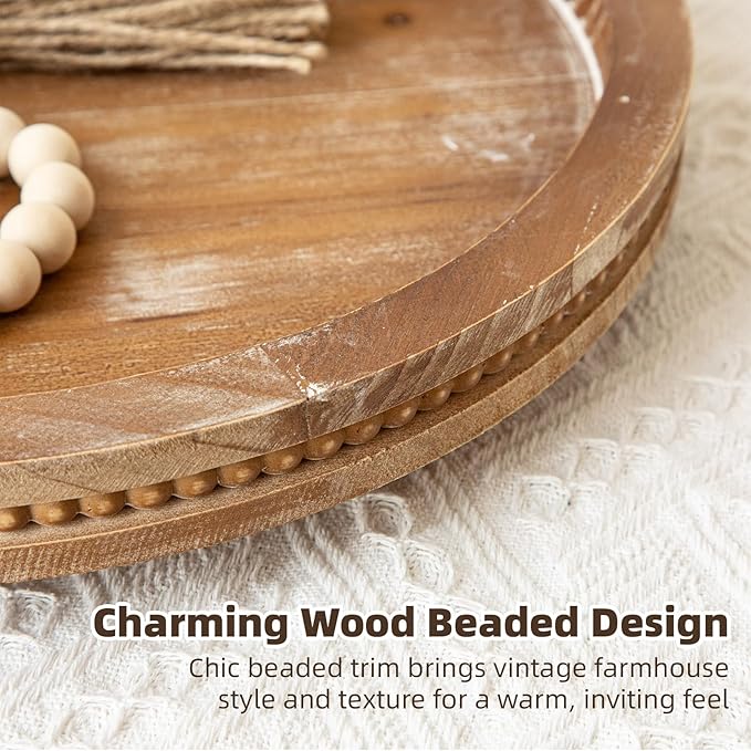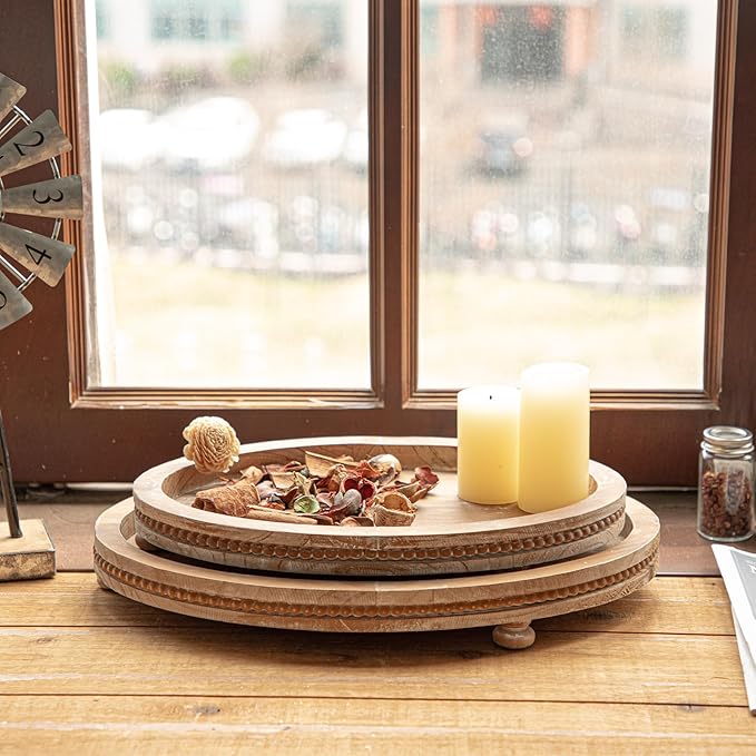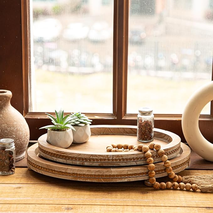 - Elegant Wooden Serving Trays: This 2-piece set features beautifully crafted oval wooden serving trays (13.8" x 9.8" x 2" and 15.9" x 12" x 2") with a unique beaded design, adding a touch of rustic charm and sophistication to your home decor. Perfect as a wood serving tray for everyday use or special occasions