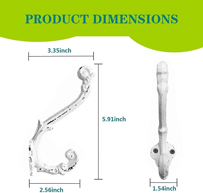 - WEIGHT CAPACITY: Cast iron hooks, Vintage style,heavy duty and substantial, 35lbs maximum weight capacity.