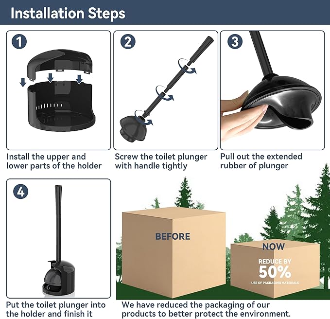 - Drip-free and Ventilated Plunger Holder: Designed to help keep bathroom floors clean & tidy, the base of our toilet plunger set can hold drips. And drips are collected by the ventilating base to dry by itself. Upgraded with ventilation, the toilet plunger holder allows drips to evaporate.
