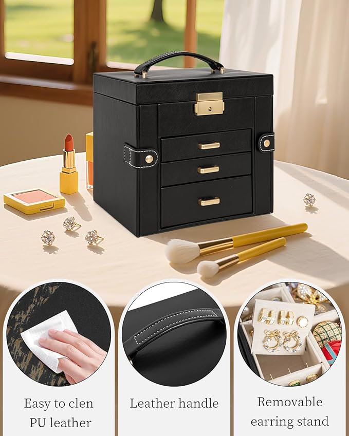 - with Inner Mirror and Lock: There is a mirror on the top layer of the jewelry box for women, which allows you to do makeup and check makeup at the same time, especially when you go out to work or on an appointment in the morning, saving your precious time