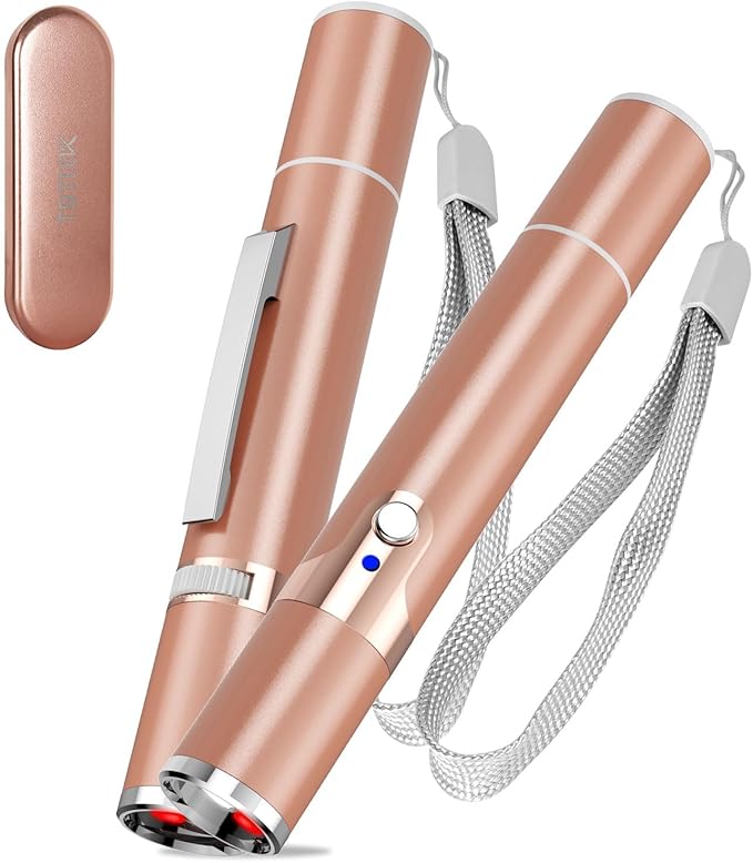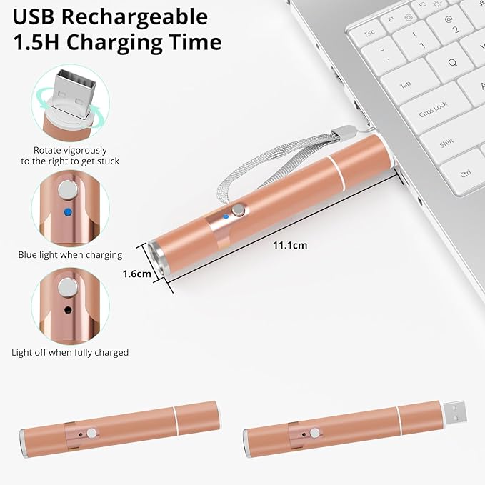 TBTeek Cat Toys, with Metal Case, 2 Pieces, Rechargeable, 7 Adjustable Patterns, Interactive Kitten Pet Dog Red Dot Chase Light Toy for Cats Fun Playing Exercise(Rose Gold)
