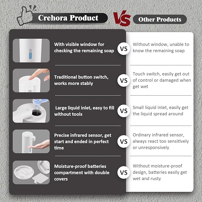 - 【Automatic Soap Dispenser Touchless】: The touchless soap dispenser adopts the latest infrared sensing technology, allowing you to get soap without contact. This automatic soap dispenser is touchless, effectively avoid cross-infection, make your washing more hygienic and convenient and bring health to the whole family