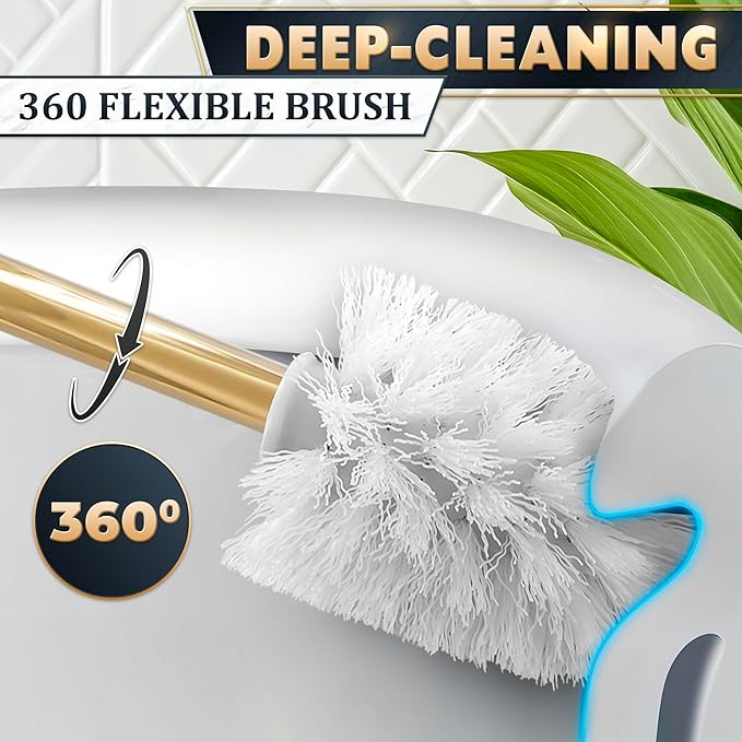 - Durable Stainless Steel Build: Corrosion-resistant steel keeps this toilet bowl cleaners brush and holder set strong and flawless. A premium toilet cleaner brush pairs with gold bathroom accessories set