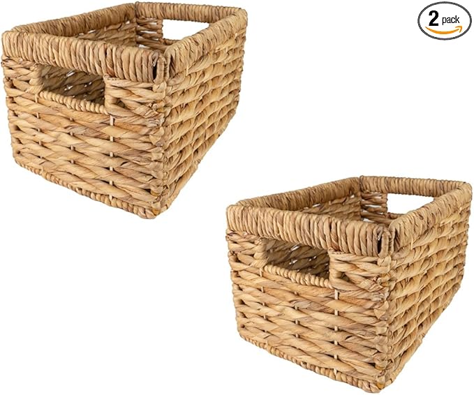 Wicker Basket For Shelves, Baskets for Organizing, Woven Storage Basket with Built-in Handles (Medium 2-Pack, Natural Water Hyacinth)