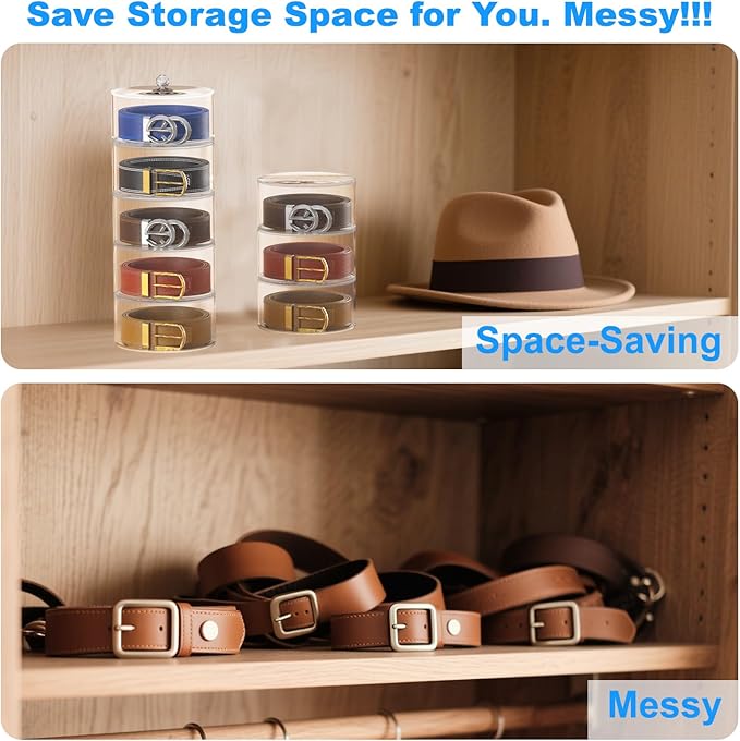- 【Quick-Access Belt Holder & Display】 No more tangled belts! Acrylic tiers keep belts separated & visible. Grab your favorite in seconds. Also displays collector belts as home decor.