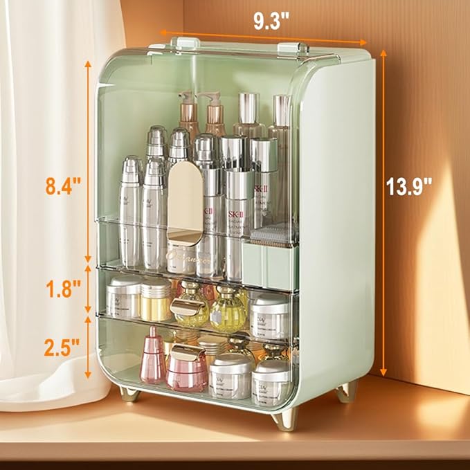 - 3, Dustproof & Water-resistant: The vanity makeup organizer is built with crystal-clear acrylic cover which blocks bathroom humidity, dust, and pet hair while showcasing your collection. The 2 tier smooth-gliding drawers will keep your valuable skincare products secure