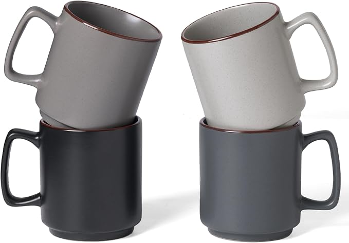- Coffee Mugs Set of 4: Each mug has a maximum capacity of 14oz, a comfortable capacity of 13oz. Perfect for coffee, milk, cocoa, tea, and suitable for use at home, in the office, or at gatherings