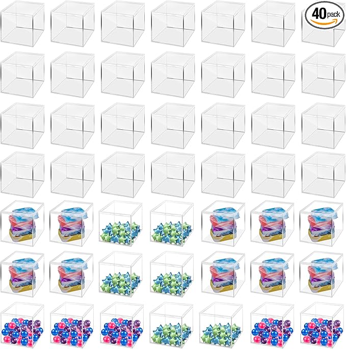 40 Pack 2.2 x 2.2 x 1.8 Inches Acrylic Containers Clear Box with Lids for Display Acrylic Gift Box & Clear Multi Purpose Organizer Candy Storage for Cosmetics, Makeup, Jewelry, Party Favor