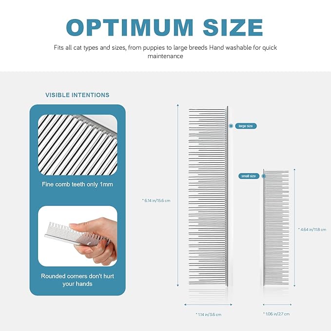 - DURABLE & COMFORTABLE DESIGN – Lightweight yet sturdy 6-inch comb fits comfortably in hand. Polished rounded tips ensure a pleasant grooming experience for both pets and owners, reducing grooming stress.