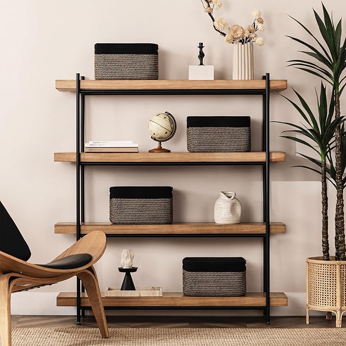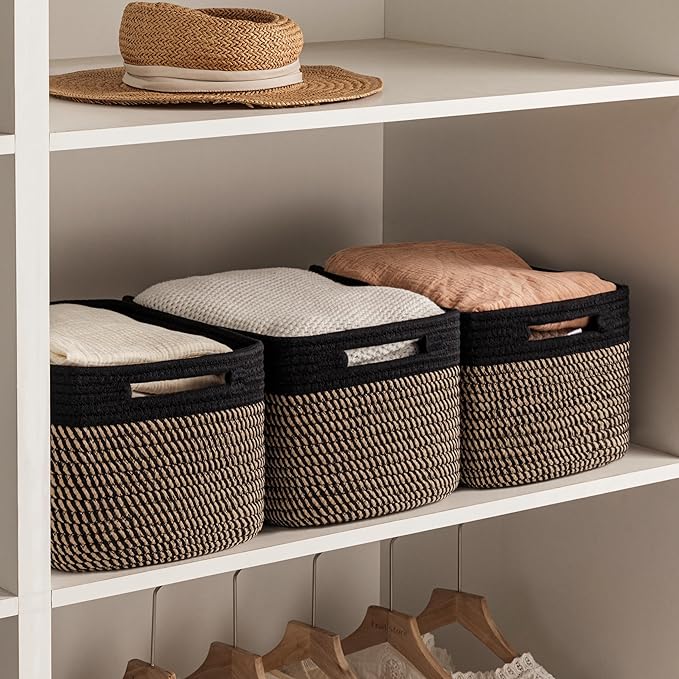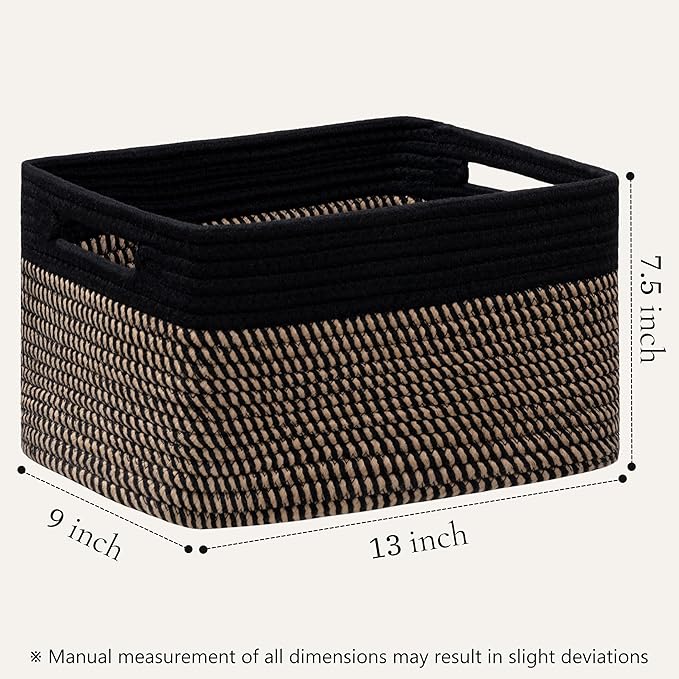 UBBCARE 2 Pack Storage Basket for Shelves, Woven Baskets for Organizing, Durable Organizer Baskets Storage Bins for Bookshelf, Toys, Towels, Clothes, 13''Lx9''Wx7.5''H, Black&Brown